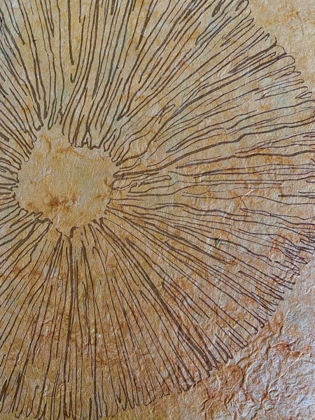 inspirations1A fascination with the aesthetics and science of ecosystems has led me to explore the transformational nature of mycelium- the underground network that supports the growth of trees, plants and the fruiting of mushrooms. I’m inspired by mycoflora, especially the visual details of mushroom spore prints and gill patterns, and all the details of mycology- the study of mushrooms.