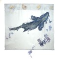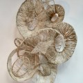 Primordial was inspired by the fossil of an ancient marine species, Pachyrhiodus, alive in the Cretaceous time period, that swam in the inland seas covering part of the southwest, where I live. The piece is silk organza with Kozo bark fiber. It also includes shapes inspired by ammonites and primitive versions of floating algae, called Coccoliths, which bloomed amid the ancient shallow seas and brought nourishment to the creatures there. 50 x 53 x 3” -